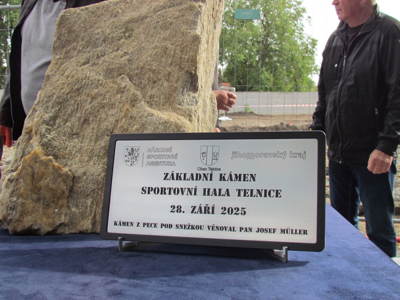 V neděli 28. září 2025 proběhlo v areálu sokolovny slavnostní položení základního kamene sportovní haly. Akce se zúčastnili členové zastupitelstva obce Telnice, občané, zástupci spolků a klubů, kteří vyjádřili svoji podporu při podávání žádosti o dotaci na výstavbu sportovní haly a pozvaní hosté. Rádi jsme přivítali člena rady Národní sportovní agentury pana Mgr. Františka Horáka, náměstka hejtmana Jihomoravského kraje pana ing. Jana Zámečníka, prezidenta Českého svazu házené pana Mgr. Ondřeje Zdráhalu, zástupce projekční kanceláře pana Ing. Josefa Katolického, stavbyvedoucího a zástupce dodavatele Stavební firmy Navláčil, s. r. o. pana Bc. Jaroslava Machálka, technický dozor investora pana Ing. Marka Sklenáře a telnického faráře otce Oldřicha Chocholáče. Nechyběli ani nejmladší házenkáři, kteří se už na novou halu určitě těší. Program byl zahájen představením a přivítáním hostů, požehnáním základního kamene telnickým farářem a krátkými proslovy jednotlivých hostů. Následně potom hosté postupně poklepali základní kámen, který věnoval pan Josef Müller ze svého pozemku v Peci pod Sněžkou. Kámen byl doplněn tabulkou s nápisem, kterou zajistil se svými kolegy pan Zdenek Kukla. Poklepání se nebáli ani malí házenkáři, kteří se své role zhostili bez problémů. Kámen i s kladívkem pak byli k dispozici všem, kdo měli zájem tímto slavnostním aktem stvrdit zahájení stavby sportovní haly. Pro všechny účastníky byl připraven společný přípitek a malé pohoštění, za které děkujeme restauraci U Seňora. Příjemnou atmosféru nedělního odpoledne zajistila cimbálová muzika Mlýnica ze Sokolnic. Děkujeme všem, kdo se podíleli na přípravách této akce i všem účastníkům za podporu. Nezbývá než si přát, aby celá stavba proběhla bez problémů a za rok jsme se mohli opět sejít, tentokrát při slavnostním otevřením nové sportovní haly. Fotografie z této akce naleznete zde.