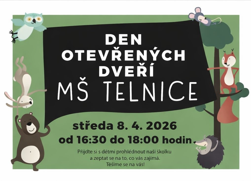 MŠ Telnice zve na Den otevřených dveří – ve středu 8. dubna 2026 od 16:30 do 18:00 hodin.
