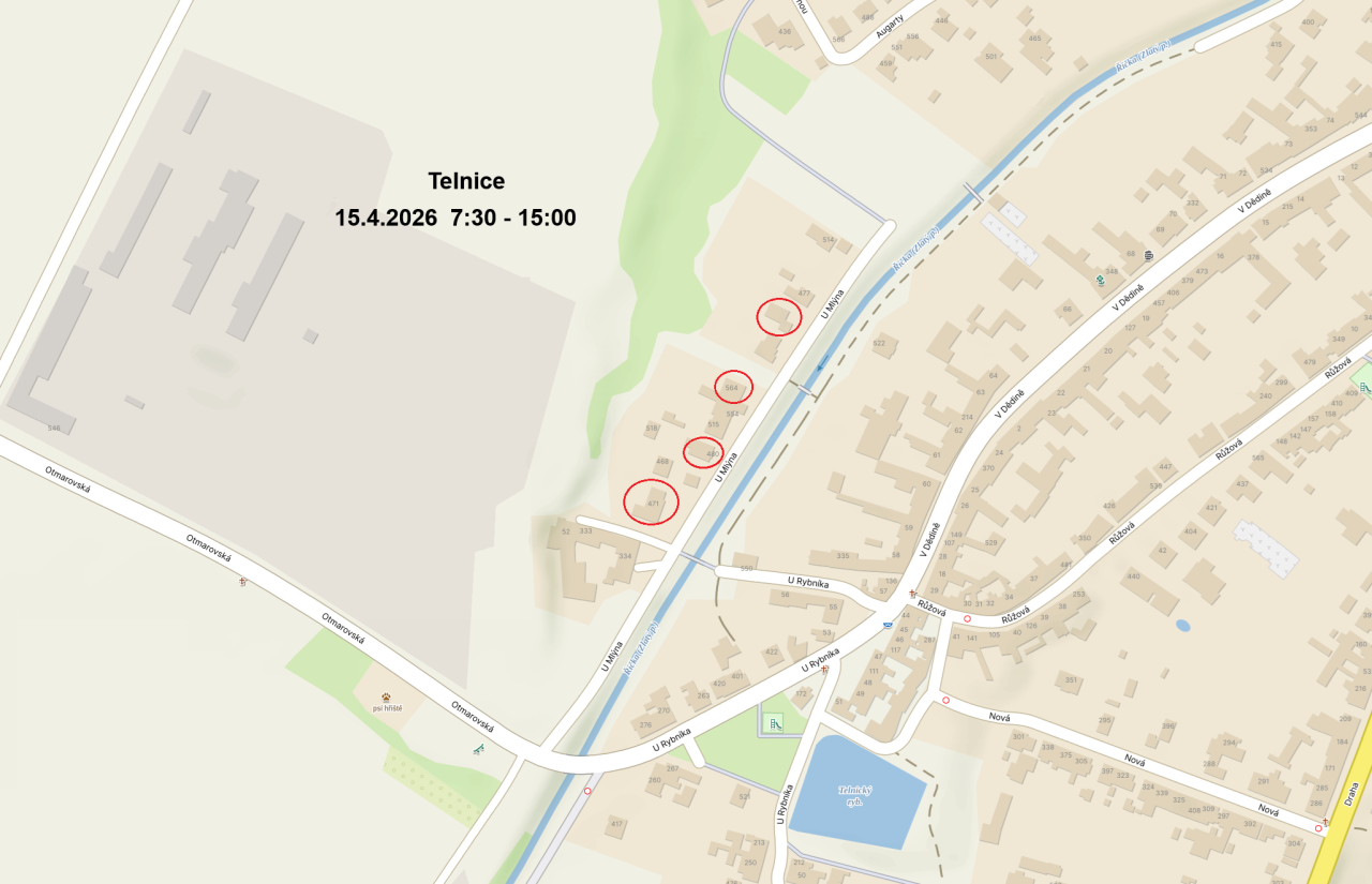 Z důvodu plánovaných prací na zařízení distribuční soustavy bude přerušena dodávka elektrické energie ve středu 15. dubna 2026 od 7:30 do 15:00 v ulici U Mlýna č.p. 471, 480, 564, k/969. Děkujeme za pochopení.