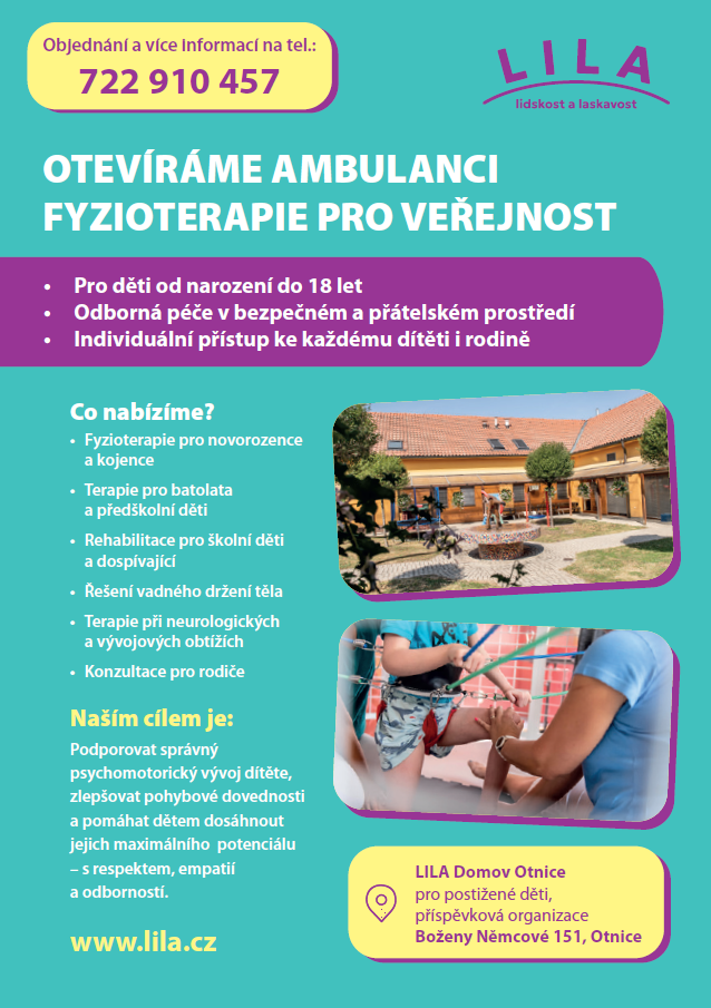 LILA Otnice otvírá novou ambulanci fyzioterapie pro veřejnost - pro děti od narození do 18 let.